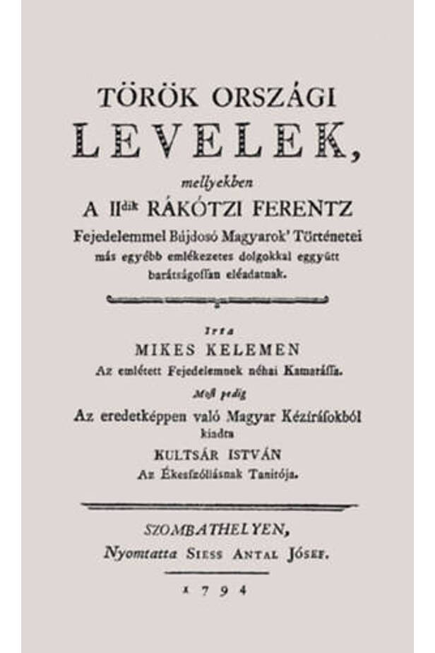 Mikes Kelemen régi irodalmunk egyik legkiemelkedőbb alakja volt. A 18. század közepének legkiválóbb műve a Törökországi levelek című gyűjtemény, amelyet Rodostóban, Rákóczi inasaként írt a fejedelem ösztönzésére. 207 fiktív levélből álló gyűjtemény, melyek közül az első 1717. október 10-én, az utolsó 1758. december 20-án kelt. A levél írója a bujdosó Mikes Kelemen, címzettje a Konstantinápoly mellett lakó fiktív P. E. grófné. A mű címét Kultsár István találta ki, amikor 1794-ben 225 évvel ezelőtt megjelentette. A könyv még ma is élvezetes olvasmány, hiszen könnyed, szellemes társalgási stílusú, az utókor számára történelmi mondanivalója miatt egy rendkívül értékes alkotás.